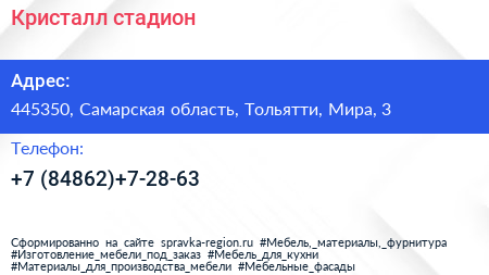 Кристалл, стадион по адресу 445350, Самарская область, Тольятти, Мира, 3 в дальнейшем Организация, размещена в следующих категориях: