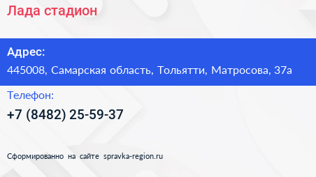 Лада, стадион по адресу 445008, Самарская область, Тольятти, Матросова, 37а в дальнейшем Организация, размещена в следующих категориях: