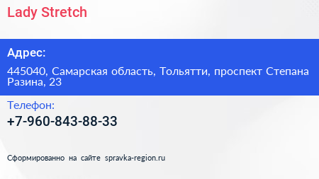 Lady Stretch по адресу 445040, Самарская область, Тольятти, проспект Степана Разина, 23 в дальнейшем Организация, размещена в следующих категориях: