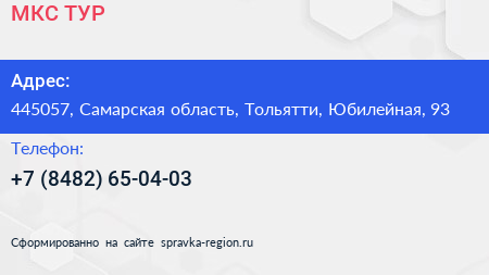 МКС-ТУР по адресу 445057, Самарская область, Тольятти, Юбилейная, 93 в дальнейшем Организация, размещена в следующих категориях: