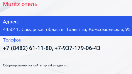 Muritz, отель по адресу 445011, Самарская область, Тольятти, Комсомольская, 95 в дальнейшем Организация, размещена в следующих категориях: