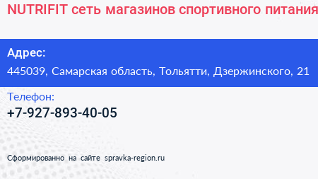 NUTRIFIT, сеть магазинов спортивного питания по адресу 445039, Самарская область, Тольятти, Дзержинского, 21 в дальнейшем Организация, размещена в следующих категориях: