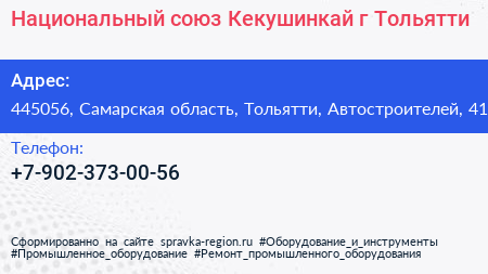 Национальный союз Кекушинкай, г. Тольятти по адресу 445056, Самарская область, Тольятти, Автостроителей, 41 в дальнейшем Организация, размещена в следующих категориях: