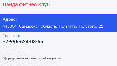 Панда, фитнес-клуб по адресу 445004, Самарская область, Тольятти, Толстого, 21 в дальнейшем Организация, размещена в следующих категориях: