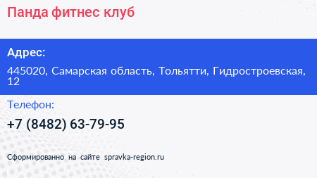 Панда, фитнес-клуб по адресу 445020, Самарская область, Тольятти, Гидростроевская, 12 в дальнейшем Организация, размещена в следующих категориях: