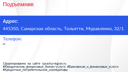Подъемник по адресу 445350, Самарская область, Тольятти, Муравленко, 32/1 в дальнейшем Организация, размещена в следующих категориях: