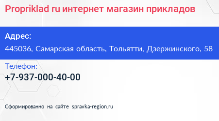 Propriklad.ru, интернет-магазин прикладов по адресу 445036, Самарская область, Тольятти, Дзержинского, 58 в дальнейшем Организация, размещена в следующих категориях: