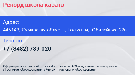 Рекорд, школа каратэ по адресу 445143, Самарская область, Тольятти, Юбилейная, 22в в дальнейшем Организация, размещена в следующих категориях: