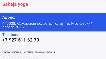 Sahaja yoga по адресу 445028, Самарская область, Тольятти, Московский проспект, 39 в дальнейшем Организация, размещена в следующих категориях: