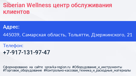 Siberian Wellness, центр обслуживания клиентов по адресу 445039, Самарская область, Тольятти, Дзержинского, 21 в дальнейшем Организация, размещена в следующих категориях: