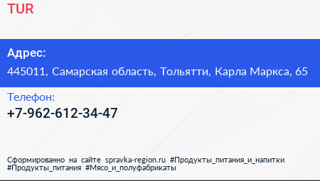 TUR по адресу 445011, Самарская область, Тольятти, Карла Маркса, 65 в дальнейшем Организация, размещена в следующих категориях: