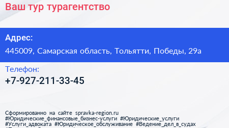 Ваш тур, турагентство по адресу 445009, Самарская область, Тольятти, Победы, 29а в дальнейшем Организация, размещена в следующих категориях: