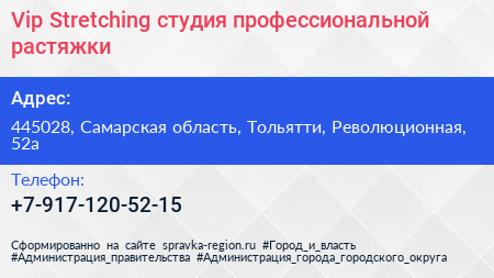 Vip Stretching, студия профессиональной растяжки по адресу 445028, Самарская область, Тольятти, Революционная, 52а в дальнейшем Организация, размещена в следующих категориях: