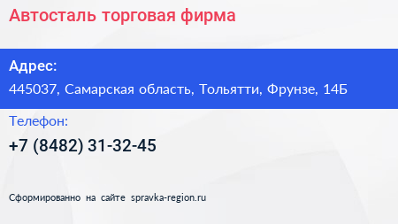 Автосталь, торговая фирма по адресу 445037, Самарская область, Тольятти, Фрунзе, 14Б в дальнейшем Организация, размещена в следующих категориях: