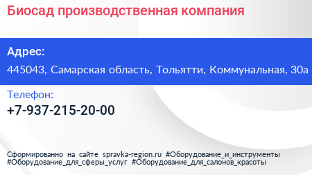 Биосад, производственная компания по адресу 445043, Самарская область, Тольятти, Коммунальная, 30а в дальнейшем Организация, размещена в следующих категориях: