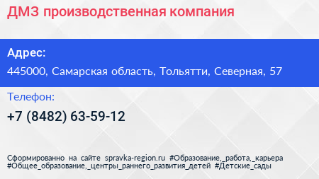 ДМЗ, производственная компания по адресу 445000, Самарская область, Тольятти, Северная, 57 в дальнейшем Организация, размещена в следующих категориях: