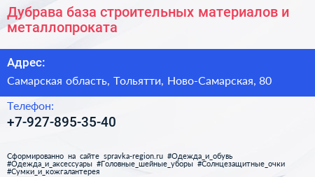 Дубрава, база строительных материалов и металлопроката по адресу Самарская область, Тольятти, Ново-Самарская, 80 в дальнейшем Организация, размещена в следующих категориях: