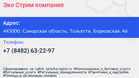 Эко-Стрим, компания по адресу 445000, Самарская область, Тольятти, Борковская, 46 в дальнейшем Организация, размещена в следующих категориях: