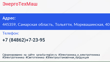 ЭнергоТехМаш по адресу 445359, Самарская область, Тольятти, Морквашинская, 40 в дальнейшем Организация, размещена в следующих категориях: