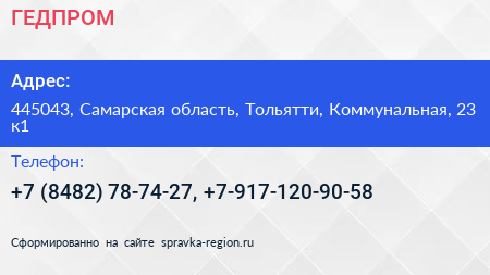 ГЕДПРОМ по адресу 445043, Самарская область, Тольятти, Коммунальная, 23 к1 в дальнейшем Организация, размещена в следующих категориях: