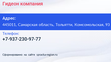 Гидеон, компания по адресу 445011, Самарская область, Тольятти, Комсомольская, 93 в дальнейшем Организация, размещена в следующих категориях: