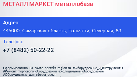 МЕТАЛЛ-МАРКЕТ, металлобаза по адресу 445000, Самарская область, Тольятти, Северная, 83 в дальнейшем Организация, размещена в следующих категориях: