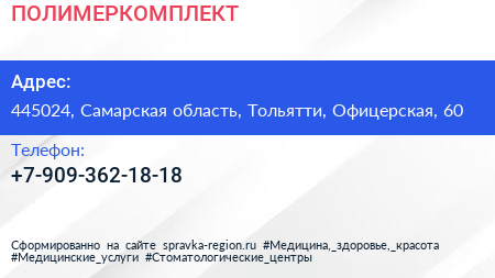 ПОЛИМЕРКОМПЛЕКТ по адресу 445024, Самарская область, Тольятти, Офицерская, 60 в дальнейшем Организация, размещена в следующих категориях: