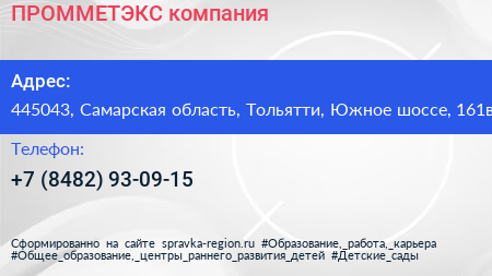 ПРОММЕТЭКС, компания по адресу 445043, Самарская область, Тольятти, Южное шоссе, 161в в дальнейшем Организация, размещена в следующих категориях: