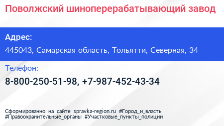 Поволжский шиноперерабатывающий завод по адресу 445043, Самарская область, Тольятти, Северная, 34 в дальнейшем Организация, размещена в следующих категориях: