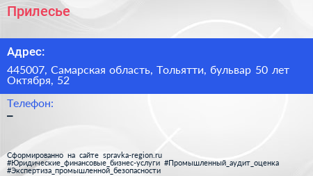 Прилесье по адресу 445007, Самарская область, Тольятти, бульвар 50 лет Октября, 52 в дальнейшем Организация, размещена в следующих категориях: