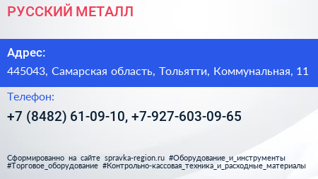 РУССКИЙ МЕТАЛЛ по адресу 445043, Самарская область, Тольятти, Коммунальная, 11 в дальнейшем Организация, размещена в следующих категориях: