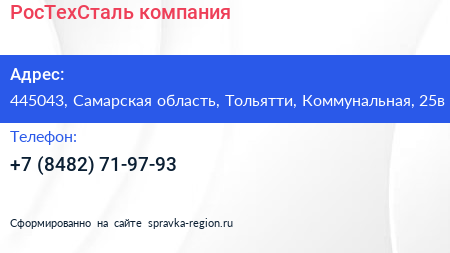 РосТехСталь, компания по адресу 445043, Самарская область, Тольятти, Коммунальная, 25в в дальнейшем Организация, размещена в следующих категориях: