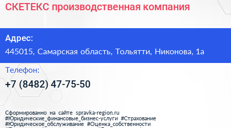 СКЕТЕКС, производственная компания по адресу 445015, Самарская область, Тольятти, Никонова, 1а в дальнейшем Организация, размещена в следующих категориях: