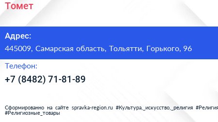 Томет по адресу 445009, Самарская область, Тольятти, Горького, 96 в дальнейшем Организация, размещена в следующих категориях: