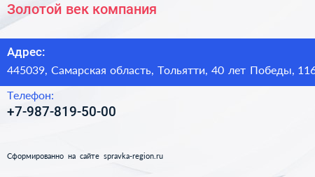 Золотой век, компания по адресу 445039, Самарская область, Тольятти, 40 лет Победы, 116 в дальнейшем Организация, размещена в следующих категориях: