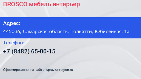 BROSCO мебель & интерьер по адресу 445036, Самарская область, Тольятти, Юбилейная, 1а в дальнейшем Организация, размещена в следующих категориях: