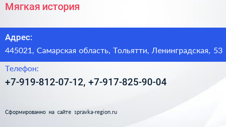 Мягкая история по адресу 445021, Самарская область, Тольятти, Ленинградская, 53 в дальнейшем Организация, размещена в следующих категориях:
