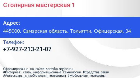 Столярная мастерская №1 по адресу 445000, Самарская область, Тольятти, Офицерская, 34 в дальнейшем Организация, размещена в следующих категориях: