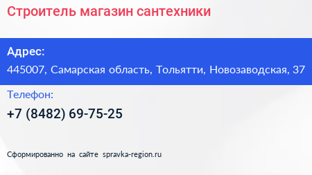 Строитель, магазин сантехники по адресу 445007, Самарская область, Тольятти, Новозаводская, 37 в дальнейшем Организация, размещена в следующих категориях: