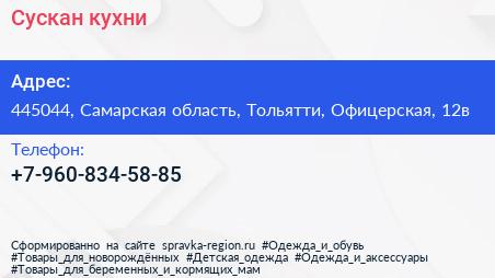 Сускан кухни по адресу 445044, Самарская область, Тольятти, Офицерская, 12в в дальнейшем Организация, размещена в следующих категориях: