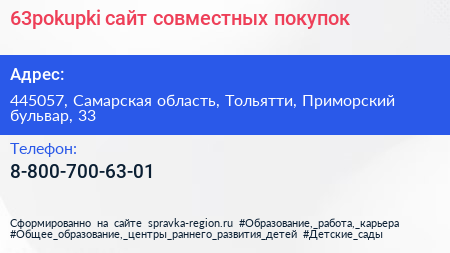 63pokupki, сайт совместных покупок по адресу 445057, Самарская область, Тольятти, Приморский бульвар, 33 в дальнейшем Организация, размещена в следующих категориях: