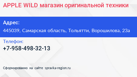 APPLE WILD, магазин оригинальной техники по адресу 445039, Самарская область, Тольятти, Ворошилова, 23а в дальнейшем Организация, размещена в следующих категориях: