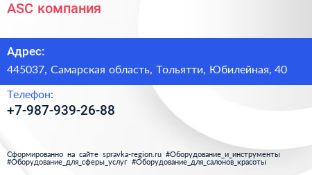 ASC, компания по адресу 445037, Самарская область, Тольятти, Юбилейная, 40 в дальнейшем Организация, размещена в следующих категориях: