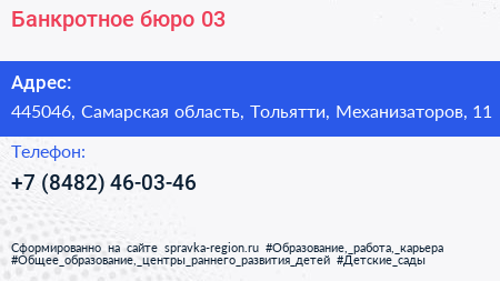 Банкротное бюро № 03 по адресу 445046, Самарская область, Тольятти, Механизаторов, 11 в дальнейшем Организация, размещена в следующих категориях: