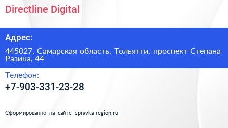 Directline Digital по адресу 445027, Самарская область, Тольятти, проспект Степана Разина, 44 в дальнейшем Организация, размещена в следующих категориях: