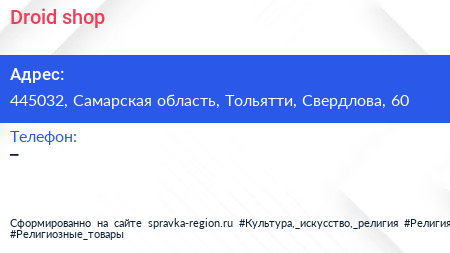 Droid shop по адресу 445032, Самарская область, Тольятти, Свердлова, 60 в дальнейшем Организация, размещена в следующих категориях:
