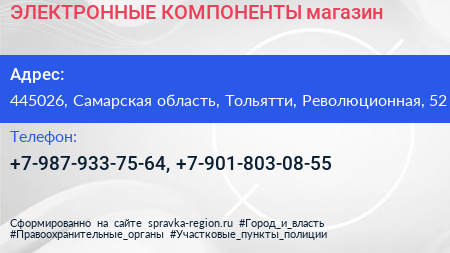 ЭЛЕКТРОННЫЕ КОМПОНЕНТЫ, магазин по адресу 445026, Самарская область, Тольятти, Революционная, 52 в дальнейшем Организация, размещена в следующих категориях: