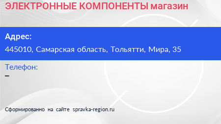 ЭЛЕКТРОННЫЕ КОМПОНЕНТЫ, магазин по адресу 445010, Самарская область, Тольятти, Мира, 35 в дальнейшем Организация, размещена в следующих категориях: