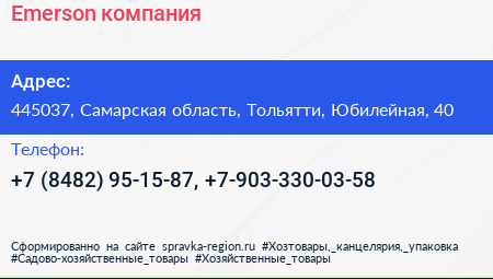 Emerson, компания по адресу 445037, Самарская область, Тольятти, Юбилейная, 40 в дальнейшем Организация, размещена в следующих категориях: