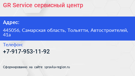 GR-Service, сервисный центр по адресу 445056, Самарская область, Тольятти, Автостроителей, 41а в дальнейшем Организация, размещена в следующих категориях:
